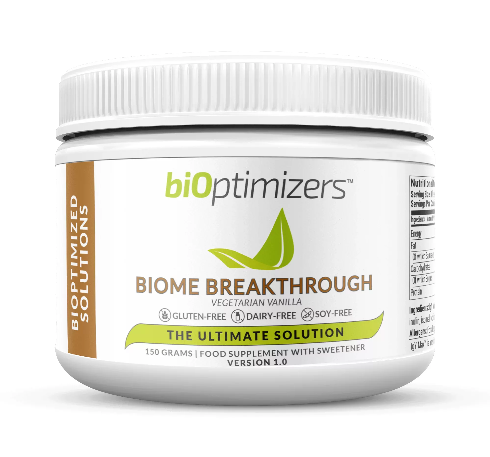 Each 150-gram tub of Biome Breakthrough BiOptimizers contains 30 servings of this unique pro-gut blend, providing weeks of improved gastrointestinal wellbeing; remember to consume it on an empty stomach for best results.
