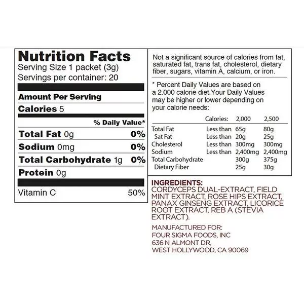 1,500 mg of dual-extracted CS-4 cordyceps mushrooms per packet.