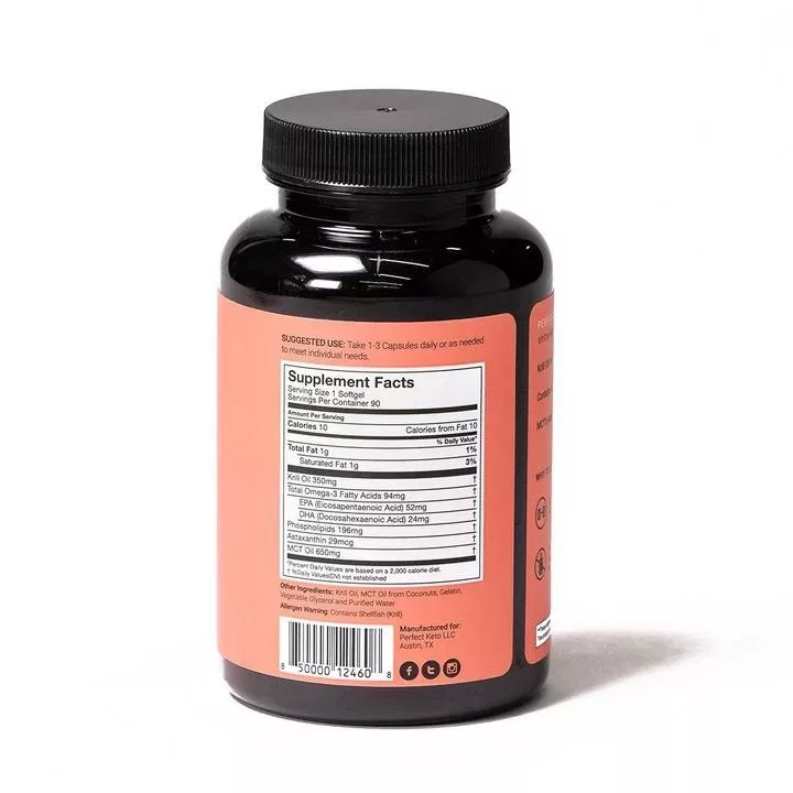 Are you looking for a supplement to support your heart health and reduce inflammation? Look no further than Keto Krill Oil from Perfect Keto. Our krill oil is a rich source of omega-3 fats and the health-beneficial compound astaxanthin. Plus, it contains a phospholipid carrier that makes it different from regular fish oil. And that’s not all – we’ve also included medium-chain triglycerides (MCTs), a unique type of fatty acid found in coconut oil that supports mental clarity and sharpness.