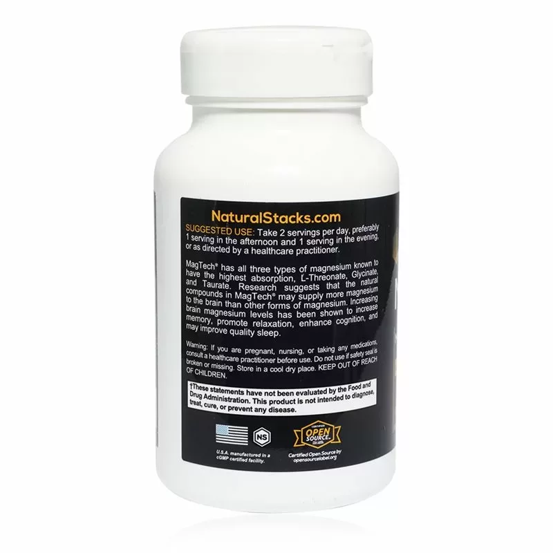 This is where Natural Stacks’ MagTech comes in. This special formula contains three forms of magnesium. In each one the metal ion is chelated to a different functional amino acid group. The design of the MagTech formula by Natural Stacks is guided by cutting edge preclinical research on the effects of raising magnesium levels on cognition. Each of the three magnesium chelating agents in MagTech has its own nutritional benefits, therefore the supplement is 100% nutritionally dense. Based on newest preclinical scientific studies MagTech will: