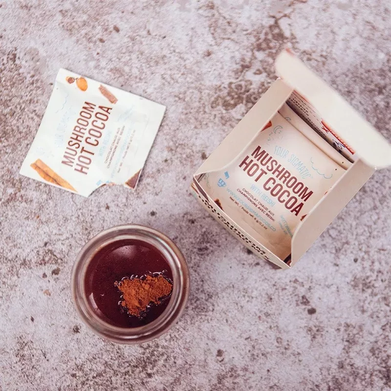 You can enjoy Mushroom Hot Cacao with Reishi in the early evening to wind down or as a perfect dessert drink to create a relaxed moment. Drink it espresso style by adding one packet to 3 fluid oz of hot water. You can also try it with a splash of coconut milk. Drink two servings per day.