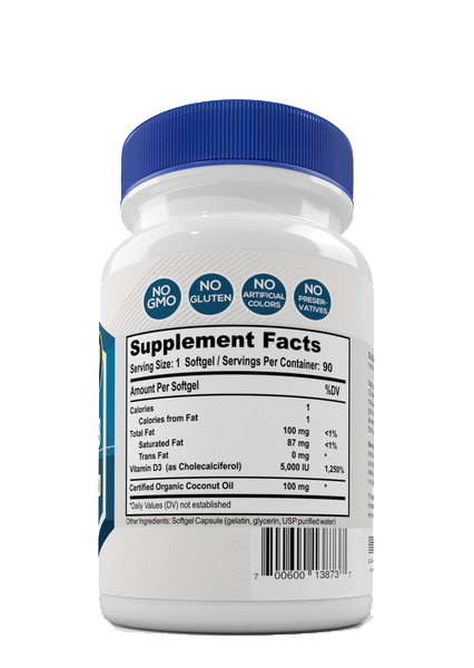 Each softgel of Natural Stacks’ Vitamin D3 with Coconut Oil contains 5,000 IU (more than 10x the recommended daily value) of Cholecalciferol, the form of vitamin D with highest bioavailability. The softgels also contain 100mg of organic coconut oil to aid with the absorption of the fat-soluble vitamin. Cold-pressed organic coconut oil can probably be described as the healthiest oil around, and acts as a superior carrier for the vitamin.