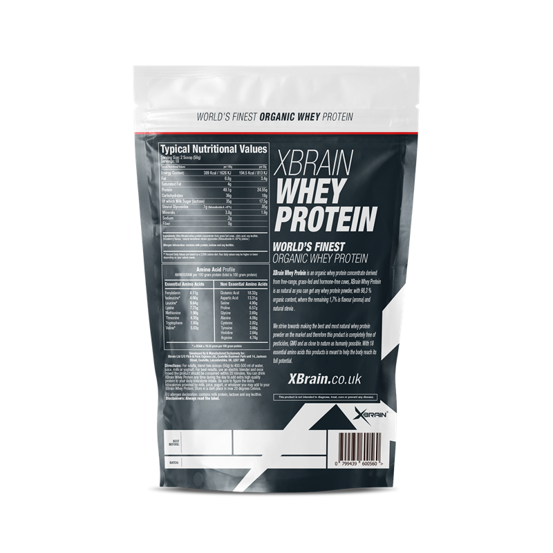 If you live an active life style, you will require greater amounts of protein, especially if you are a body builder. Whey protein powder is one of the most popular supplements used by bodybuilders, strength trainers and health conscience individuals because it contains the most bioavailable protein of all natural food sources. In fact, it should be a staple in your diet. The nice thing is that it is easy to incorporate into your diet so it is convenient especially when you don’t have time to prepare whole foods. XBrain Whey Protein is a complete protein source containing all 9 essential amino acids and much more.