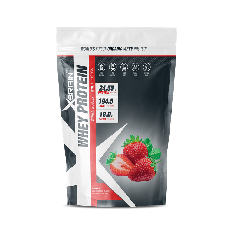 XBrain Whey Protein Strawberry is made up of a mixture of proteins that include beta-lactoglobulin, alpha-lactalbumin, bovine serum albumen and immunoglobulins. These proteins are involved in regulating a number of genes involved with protein synthesis and other metabolic pathways.
