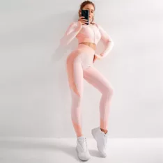 Seamless Pink Tight And Crop Top Yoga Set With Thumb Hole